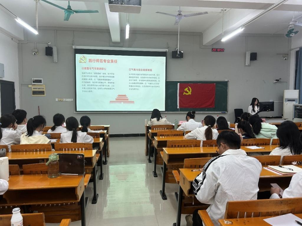 会上,全体党员共同学习党的二十届四中全会精神,本科生党支部书记刘敏领学。