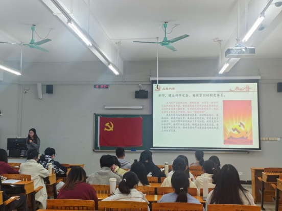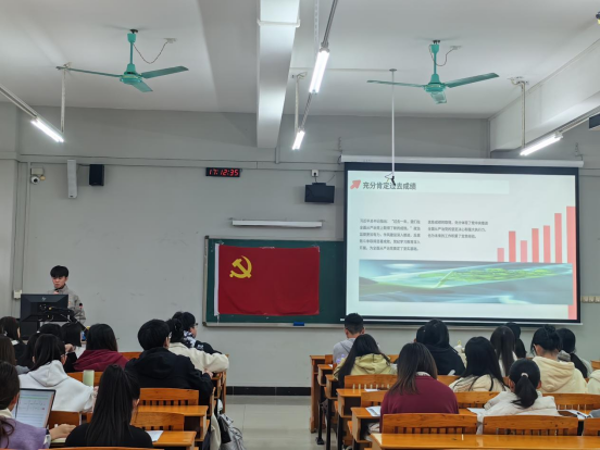 会上,全体党员共同学习习近平总书记在二十届中央纪委四次全会上发表重要讲话精神。学生党员王泓程作为党员代表分享学习心得。