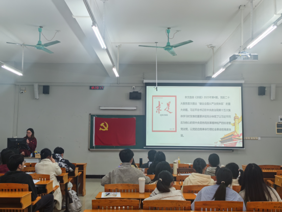 第二十六期思·享读书会,全体党员集体学习杂志《求是》,学生党员邓慧怡、连腾作为党员代表分享学习心得。
