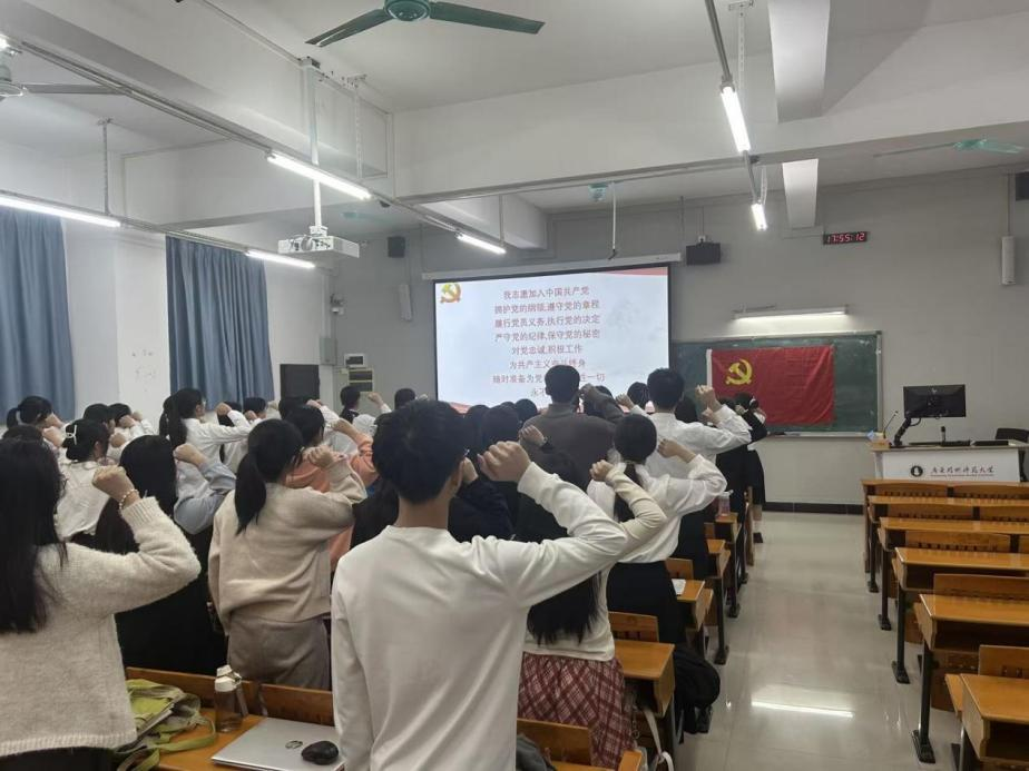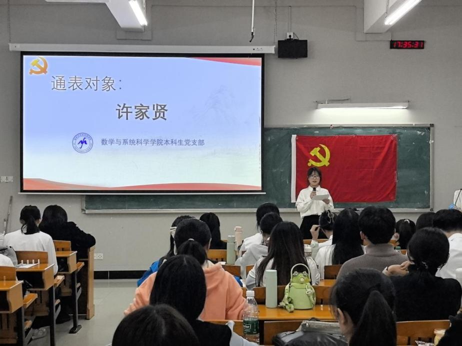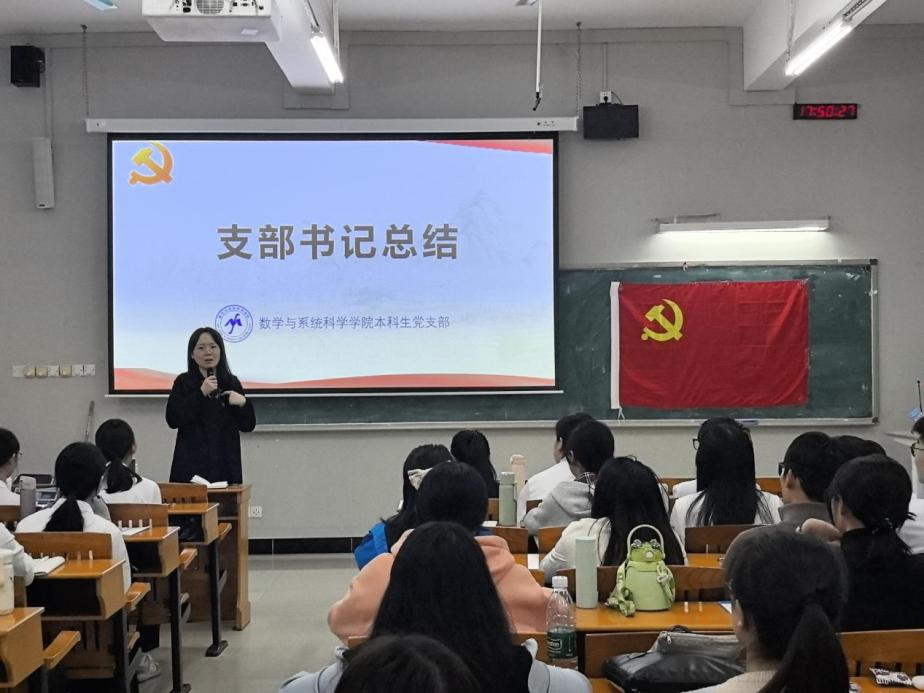2025年12月4日晚,数学与系统科学学院本科生党支部在三教402举行新党员入党宣誓和佩戴党员徽章仪式,会议由支部书记刘敏主持,全体党员出席此次会议。