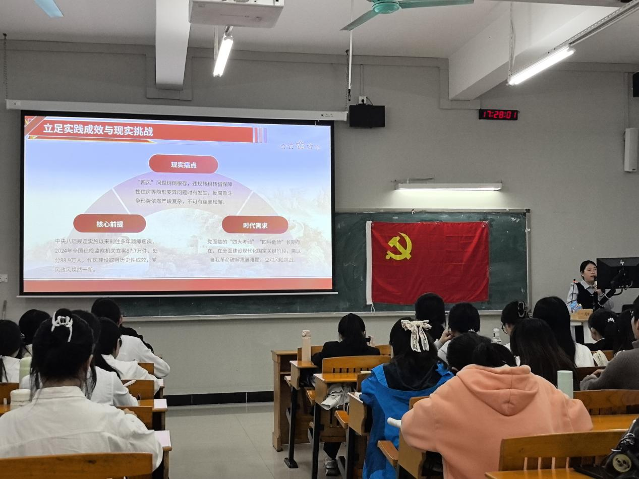 会上,全体党员共同学习党的二十届四中全会精神,丁怡同志作为党员代表进行领学并作心得分享。