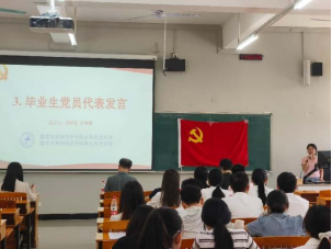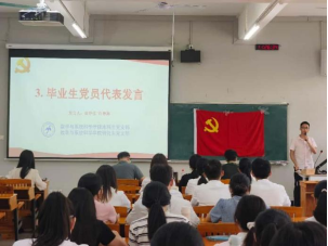 本科生毕业生党员代表黄泽佳深情回顾了在校期间在党组织培养下的成长历程,表达了对学院和老师们的衷心感谢,并承诺将带着这份培养与期望,在未来的岗位上践行党员使命。研究生党员代表许琳琳则分享了自己读研期间的学习感悟和成长历程,强调会将党员的责任担当融入课堂教学与社会服务中,努力发光发热。