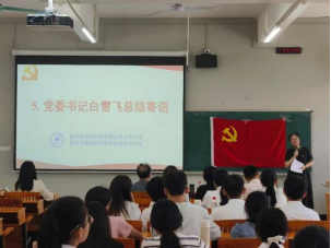 党委书记白雪飞用“春风自信声声好,学海无涯步步深”表达了对毕业生的肯定与期许,并提出三点要求:一是坚定理想信念,始终严守党纪和法律底线;二是勇担时代责任,时刻保持党员本色;三是抱定终身学习理念,不断提升自身能力。她勉励全体党员:“心中有阳光,脚下有力量,唯有为了理想坚持不懈、毫不懈怠,才能创造出无愧于时代的精彩人生。”结合深入贯彻中央八项规定精神学习教育,她警示近年来青年干部违纪违法及腐败低龄化现象,强调廉洁是立身根本,要求大家系好“廉洁从业的第一颗扣子”,提高警惕、守住底线,增强纪律与责任意识,清白做人做事。呼吁毕业生党员坚定理想信念、涵养清正品格,以实际行动贯彻中央八项规定精神,筑牢拒腐防变的思想防线。最后,希望同学们在未来的人生途中始终有数学品质的陪伴,踔厉奋发,笃行不辍,祝福同学们启程属于自己的星辰大海,所得皆所愿,所愿皆圆满。