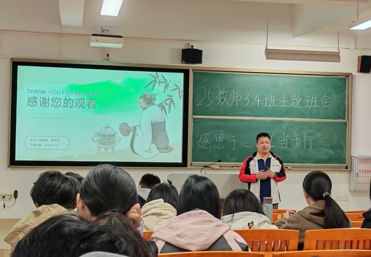 为培育学生社会责任感,弘扬感恩向善品德,引导学子将感恩之心转化为责任之行,我院于2025年11月24日至12月10日组织22-25级全体同学开展“感恩于心,担当于行”主题班会。